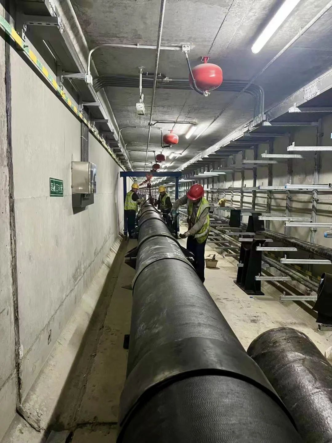 綜合管廊供水管網(wǎng)工程于今年3月份啟動,總投資700多萬元,在管廊運(yùn)營管理單位和相關(guān)部門的指導(dǎo)下,施工單位結(jié)合實(shí)際制定施工方案、創(chuàng)新施工方法,專門定做適合地下管廊作業(yè)使用的小型龍門吊和水平運(yùn)輸工具,同時上足人力,確保材料轉(zhuǎn)運(yùn)入廊不受影響,從而克服了作業(yè)空間狹窄、材料轉(zhuǎn)運(yùn)吊裝等困難,確保了項目安全、有序完成。進(jìn)入管廊可以看到,一條直徑DN400的球墨鑄鐵管道被穩(wěn)穩(wěn)安裝固定在管廊底部基座上,管道兩端將分別與迎賓大道、編鐘大道供水主管網(wǎng)連通,管道通水后城南片區(qū)供水將形成環(huán)狀管網(wǎng),可有效緩解片區(qū)供水壓力不均衡的現(xiàn)狀,將為城南片區(qū)供水服務(wù)及后期開發(fā)建設(shè)提供堅實(shí)保障。