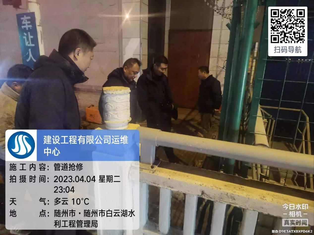 4月4日,水務(wù)集團(tuán)接到一條熱線工單,反映位于白云湖大壩舜井大橋路段處一根DN700的主供水管網(wǎng)破裂需盡快修復(fù)。盡管已是夜間,水務(wù)集團(tuán)維修人員仍火速趕至現(xiàn)場(chǎng),當(dāng)即確定漏水管線影響范圍,及時(shí)關(guān)閉閥門(mén)并向受影響小區(qū)發(fā)布停水通知。