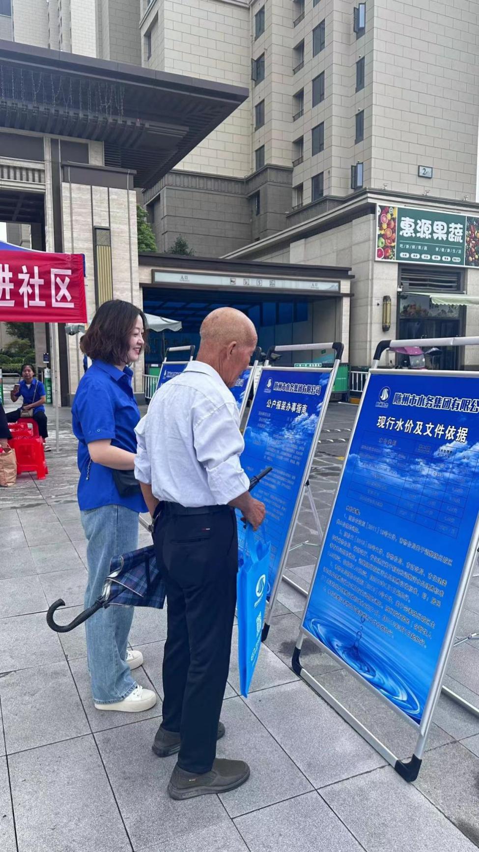 活動現(xiàn)場,市水務(wù)集團志愿服務(wù)隊在小區(qū)門口廣場有序搭建宣傳展架、懸掛宣傳橫幅、發(fā)放供水宣傳資料,工作人員以飽滿的熱情接待每一位前來咨詢的用戶。