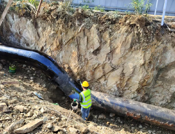 此次施工面臨雙重考驗(yàn):一方面,施工區(qū)域巖石硬度極高,破碎開挖難度遠(yuǎn)超常規(guī)工程;另一方面,管網(wǎng)鋪設(shè)需趕在人行道施工前完成,一旦延誤,不僅會拖慢隨城山大道整體建設(shè)進(jìn)度,還需額外破拆新建路面,造成工期延長與成本增加。面對“時間緊、任務(wù)重、難度大”的困境,水務(wù)集團(tuán)城南項(xiàng)目部主動扛起責(zé)任,將其作為“民生攻堅硬仗”全力推進(jìn) 。